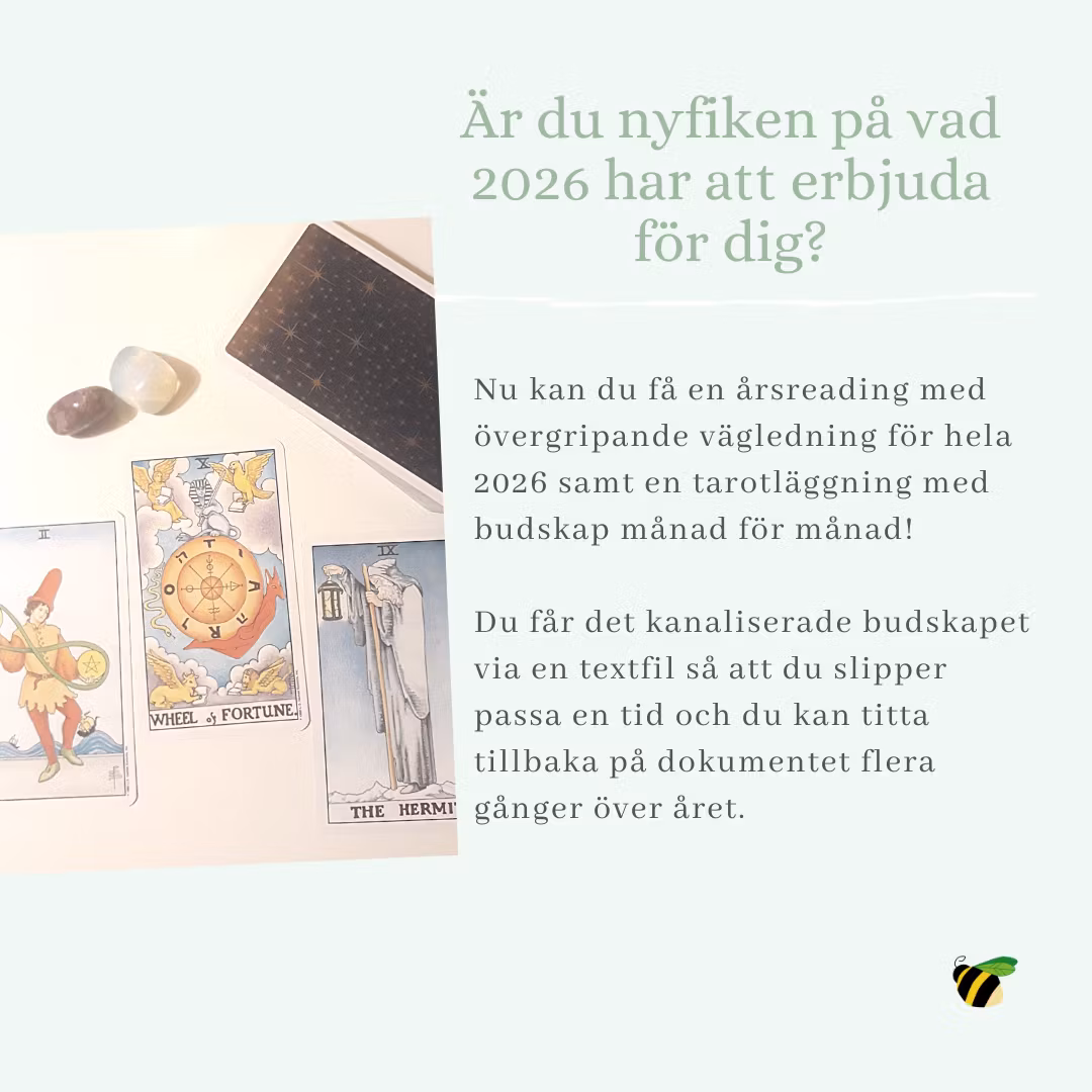 Är du nyfiken på vad 2026 kommer att innebära för dig? Nu kan du få en årsreading med en övergripande vägledning för hela året, samt en tarotläggning med information för respektive månad.
